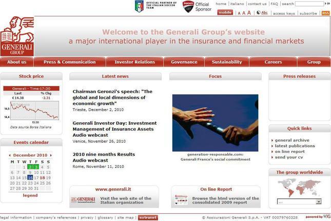 忠利保险藉助120个当地营业网点(集团控股公司或银行)以及它自身的海外办事处,在全球各大洲50个市场上开展保险业务。忠利保险是意大利最大的保险公司,世界第四大保险集团,1831年12月在特里埃斯特成立。